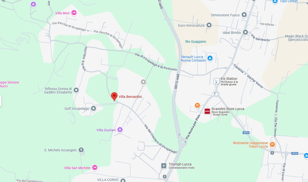 Villa Bernardini is about a 25-minute drive from the church and just 5 minutes from the Lucca Est highway exit.